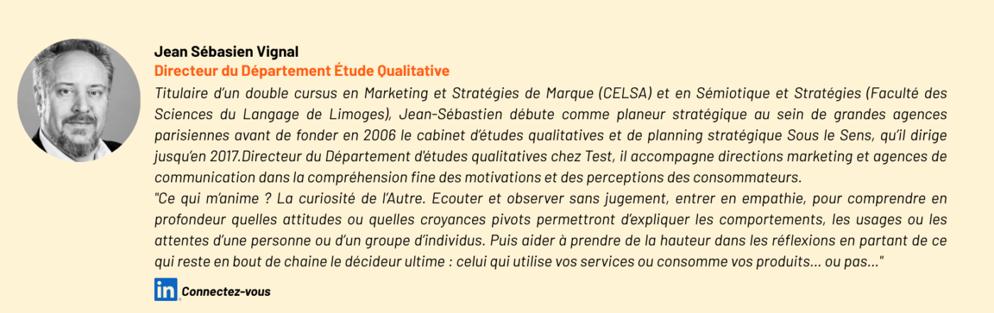 Nous accordons une importance particulière au profilage des participants que nous recrutons pour participer à nos études afin de garantir des contenus fiables et issus de la « vérité client « . De plus, nous nous appuyons sur un réseau de partenaires sélectionnés et éprouvés, que ce soit en France, en Europe ou à l’international. Cette force nous permet de pouvoir répondre aux études franco-françaises tout comme aux études. Pour vos besoins, nous combinons notre maîtrise des études qualitatives aux expertises métiers et secteur des différents départements de TEST et aux méthodologies quantitatives proposées pour des études solides, complètes et fiables.